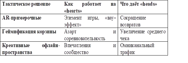 VML называет эту динамику Compressed Commerce – торговлю, сведённую к минимальному числу действий. Прямой побочный эффект – исчезновение удовольствия от процесса. Ответом становится концепция Passionomics: экономика страсти, где бренды одновременно обращаются к heads (рациональные выгоды) и hearts (эмоциональное вовлечение), с детализацией в таблице 1.
