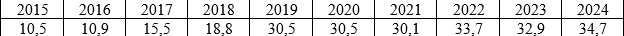 Показатель 2023 года оказался на 2% ниже, чем в 2022 году (33 млн тонн), что было связано с проведением плановых ремонтов на линиях сжижения заводов «Ямал СПГ» и «Сахалин-2». Так, «Ямал СПГ» произвел в 2023 году 19,9 млн тонн СПГ (в 2022 г. – 21 млн тонн). Свой вклад в рост производства СПГ к концу 2023 года внесли и среднетоннажные заводы: «Криогаз-Высоцк» – СП «НОВАТЭКа». Производство сжиженного природного газа в России в 2024 году выросло на 5,4% – до 34,7 млн т. по сравнению с 2023 годом, в том числе проект «НОВАТЭК» «Ямал СПГ» произвел в 2024 году более 21 миллиона тонн сжиженного природного газа.