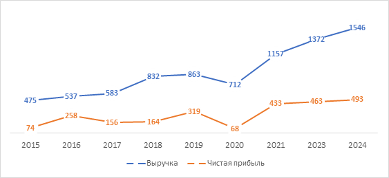Финансовые показатели компании остаются стабильными: чистая прибыль за 2023 год составила 463 млрд рублей при рентабельности по EBITDA на уровне 45%. Выручка от реализации и нормализованная EBITDA с учетом доли в EBITDA совместных предприятий в 2024 году составили 1 546 млрд руб. и 1 008 млрд руб. соответственно, увеличившись на 12,7% и 13,2% по сравнению с 2023 годом. Эти показатели позволяют компании сохранять высокую кредитоспособность и деловую активность в сложившихся условиях.