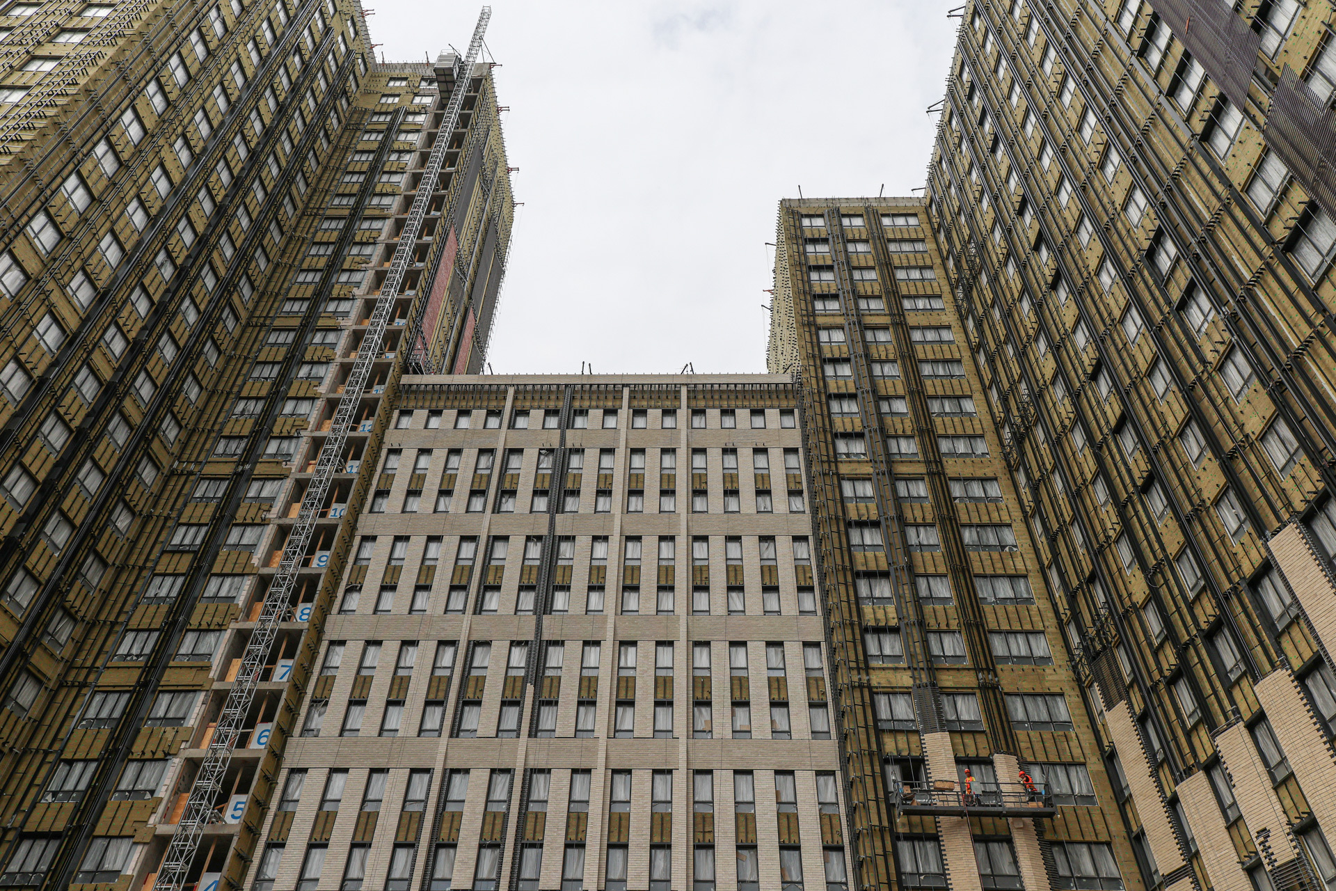 Завершаются работы по устройству лифтового оборудования. Параллельно начались работы по чистовой отделке мест общего пользования и подземного паркинга.