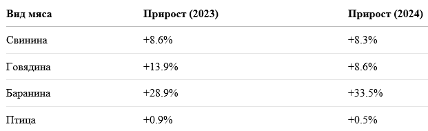 Для мясного рынка России характерна ценовая волатильность- рост затрат на производство может ограничить доступность премиальных продуктов (говядина, баранина). Например, в Красноярском крае локальный дефицит уже вызвал скачок цен.
