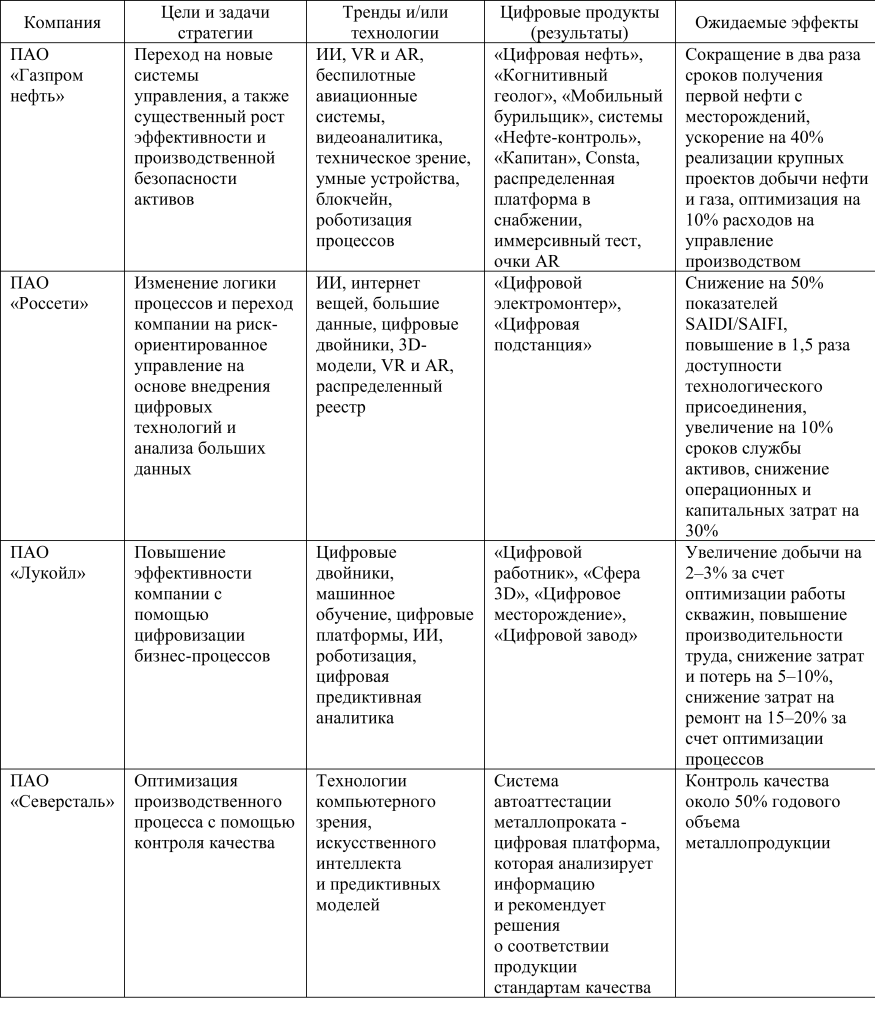 Анализируя необходимость разработки стратегии цифровой трансформации, важно также обратиться к кейсам промышленных компаний в России, которые демонстрируют явные преимущества и результаты внедрения цифровых технологий в своих бизнес-процессах (табл. 2).
