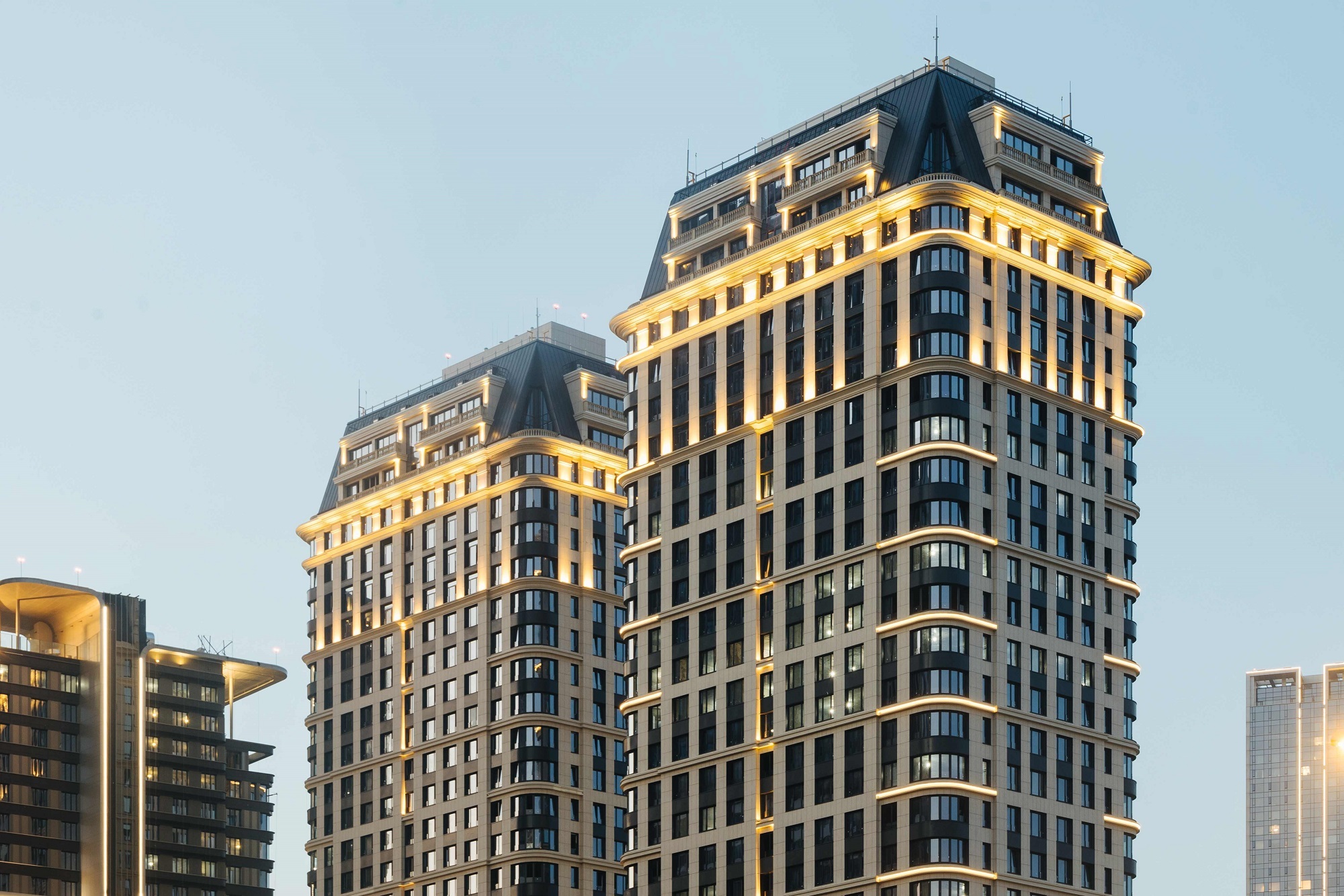 Он состоит из двух 32-этажных домов, выполненных в стиле ар-деко, которые рассчитаны на 569 квартир. Планировочные решения представлены лотами площадью от 29 кв. м до 166 кв. м, среди которых есть уникальные варианты с угловым остеклением, террасами и окнами в ванной. Высота потолков в квартирах составляет от 3 до 4,5 м, а высота окон варьируется от 2,05 до 3,1 м. Из них открываются потрясающие виды на парк и город.