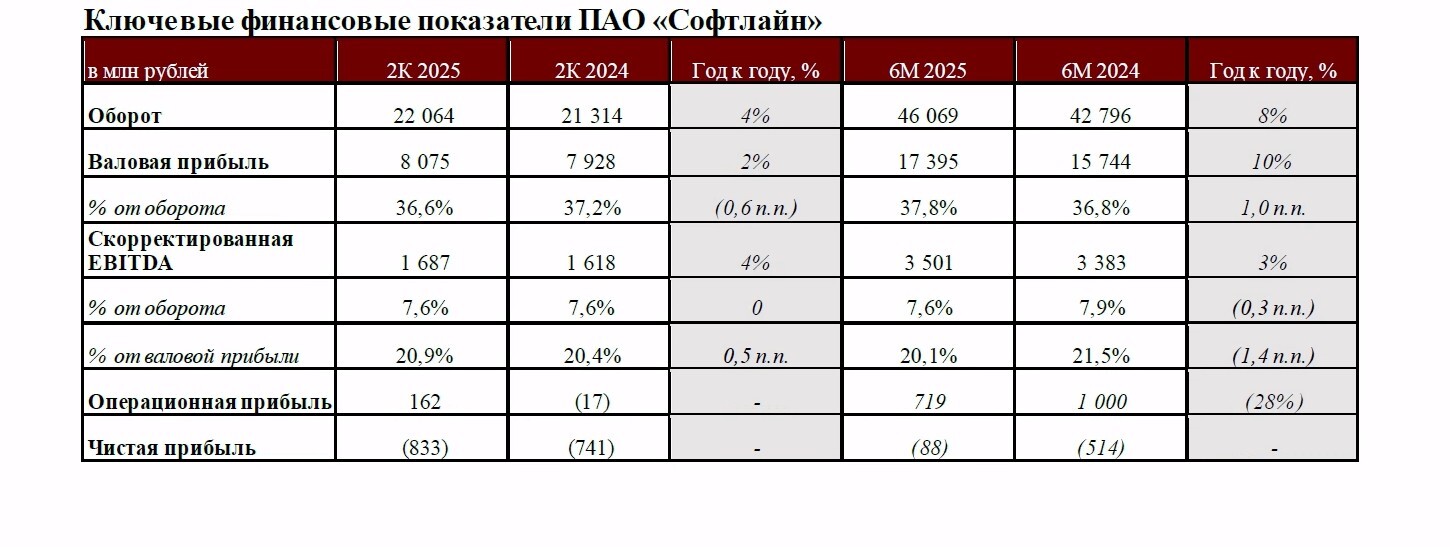 ПАО «Софтлайн» (Компания, Группа или Холдинг, MOEX: SOFL), инвестиционно-технологический холдинг с фокусом на инновации, объявляет основные аудированные консолидированные финансовые результаты ПАО «Софтлайн» по МСФО за 2 квартал и 6 месяцев 2025 года.