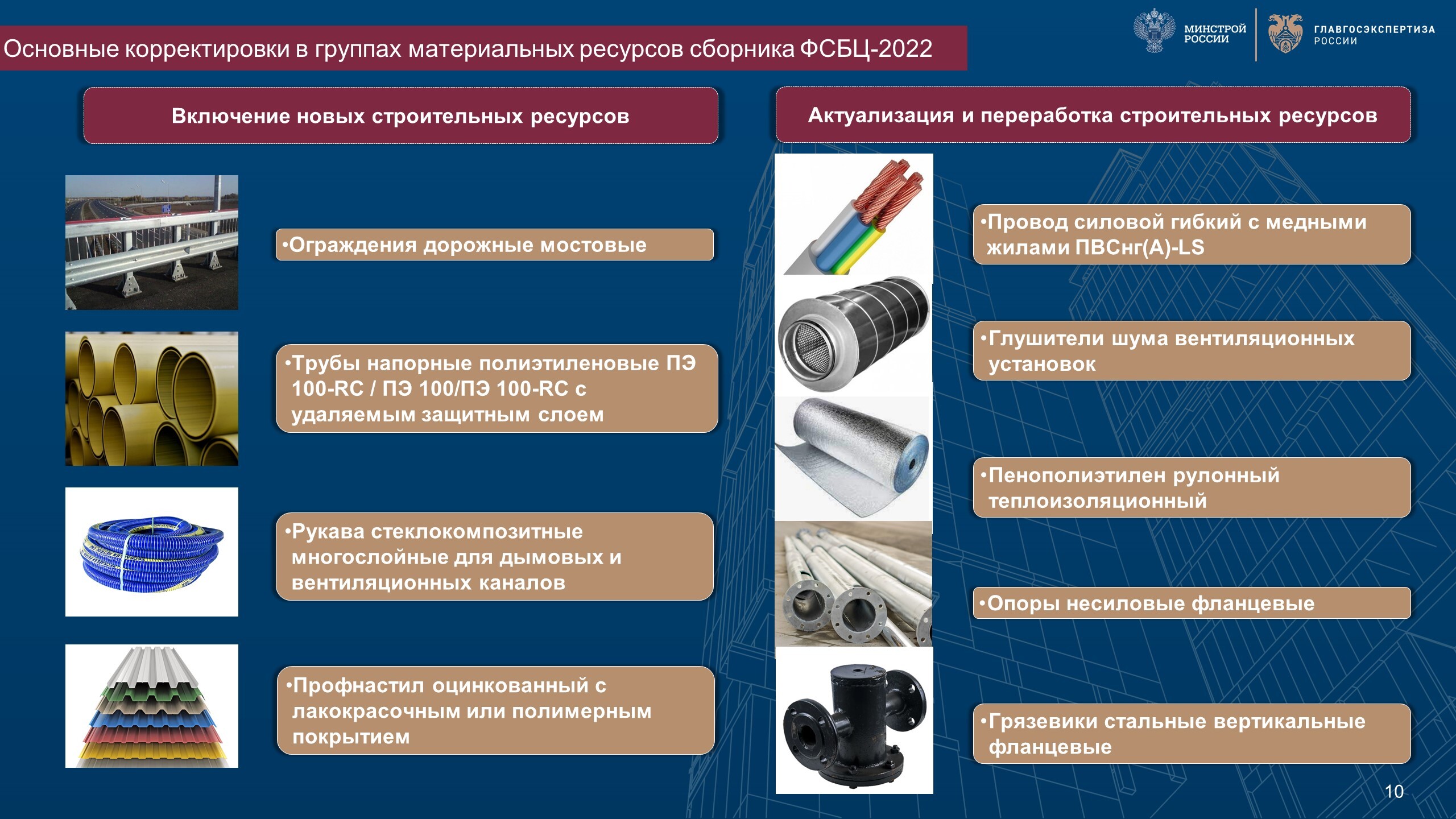 Слайд 10. Основные корректировки в группах материальных ресурсов сборника ФСБЦ-2022