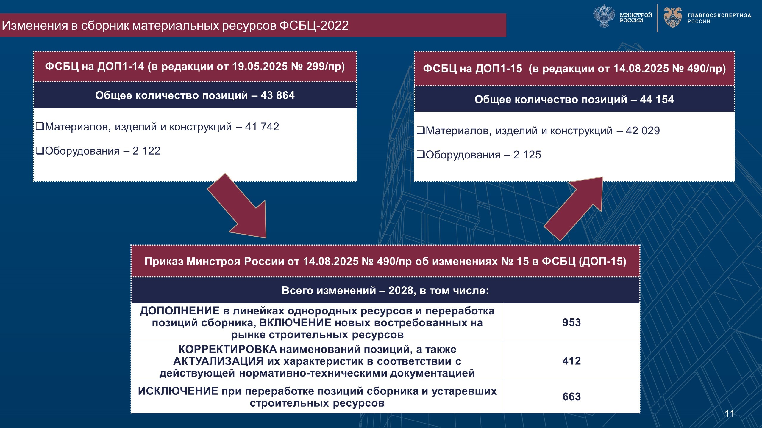 Слайд 11. Изменения в сборник материальных ресурсов ФСБЦ-2022