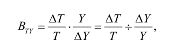 где T – налоговые поступления; ∆T – изменение налоговых поступлений; Y – налоговая база (ВВП); ∆Y – изменение налоговой базы (ВВП).