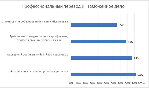 65% отметили, что при прохождении стажировок или собеседований им приходилось использовать английский – для чтения договоров, общения с иностранными партнерами или заполнения таможенных деклараций по международным форматам.