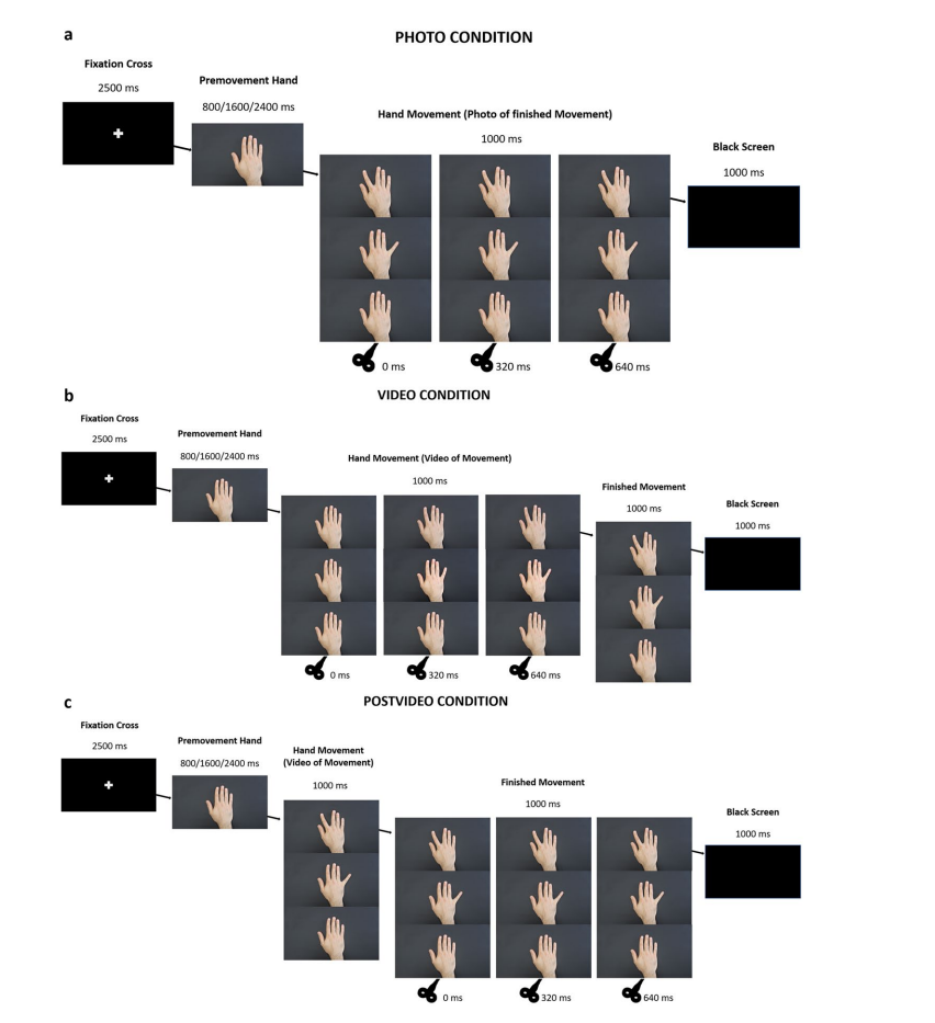 Новый эксперимент ученых из Центра нейроэкономики и когнитивных исследований НИУ ВШЭ и Лозаннского университетского госпиталя позволил определить, на каком этапе движения моторный отклик достигает максимума. В эксперименте участвовали 30 человек. Сначала им показывали фотографии движения пальцев, затем видеозапись этих движений и после этого — финальный кадр ролика.