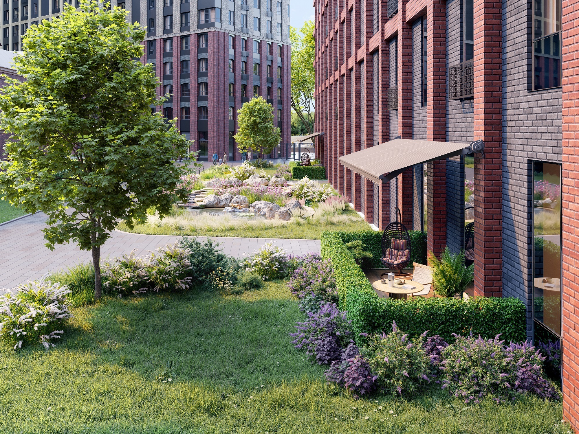 Резидентам доступны разнообразные семейные форматы площадью от 44 кв. м по цене от 23,5 млн рублей. В квартирах предусмотрены патио, высокие потолки для создания двухуровневых проектов, а с высоких этажей открывается панорамный вид на пруды и парк с вековыми деревьями.