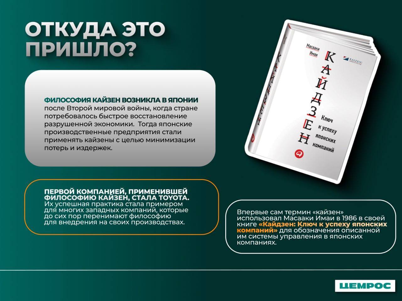 Эта концепция, пришедшая из лучших практик японского менеджмента, основана на простой идее: маленькие шаги приводят к большим результатам. Не нужно больше ждать глобальных преобразований — достаточно каждый день искать способы сделать свою работу эффективнее, безопаснее и удобнее.