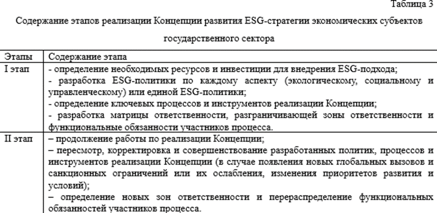 Концепция должна учитывать цели ESG-политики, заявленные высшим руководством экономического субъекта государственного сектора в отношении экологической, социальной и управленческой результативности, обеспечивающие в последующем основу для разработки и установления целей и задач ESG-стратегии.