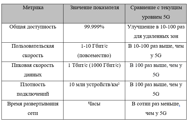 По мнению ведущих экспертов, предлагаемая интеллектуальная глобальная система связи будет иметь ряд существенных преимуществ в сравнении с G5 по ряду показателей, представленных ниже таблице.