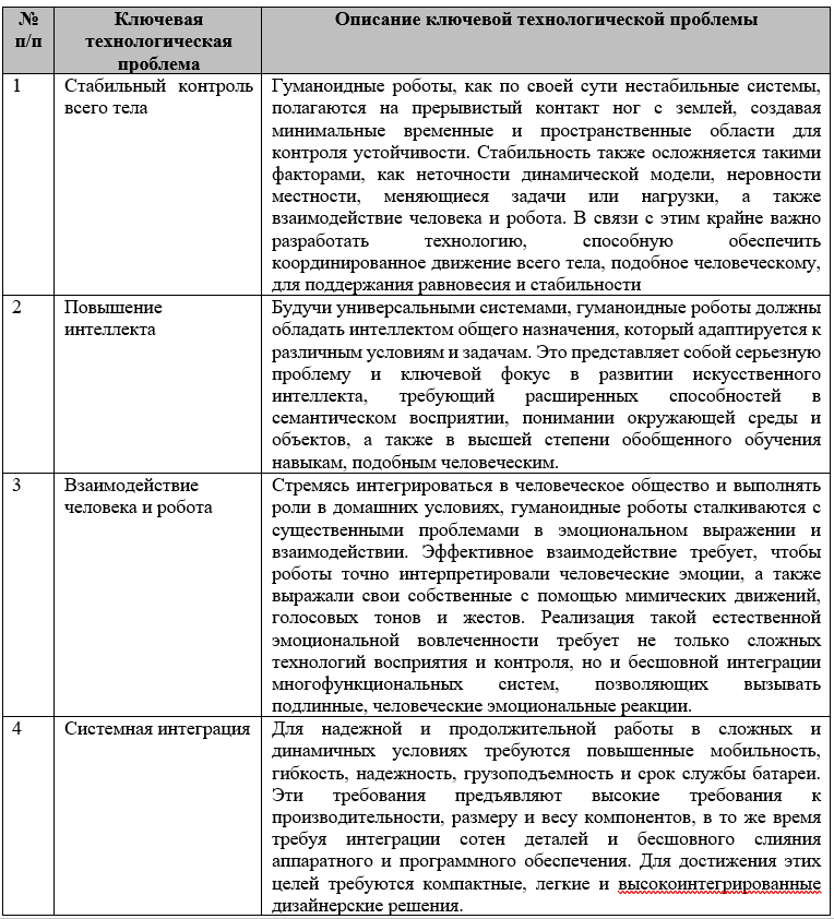 В глобальном масштабе коммерциализация гуманоидных роботов остается на ранней стадии. Чтобы человекоподобные роботы получили широкое практическое применение, они должны преодолеть несколько ключевых технических проблем, описанных в представленной ниже таблице.