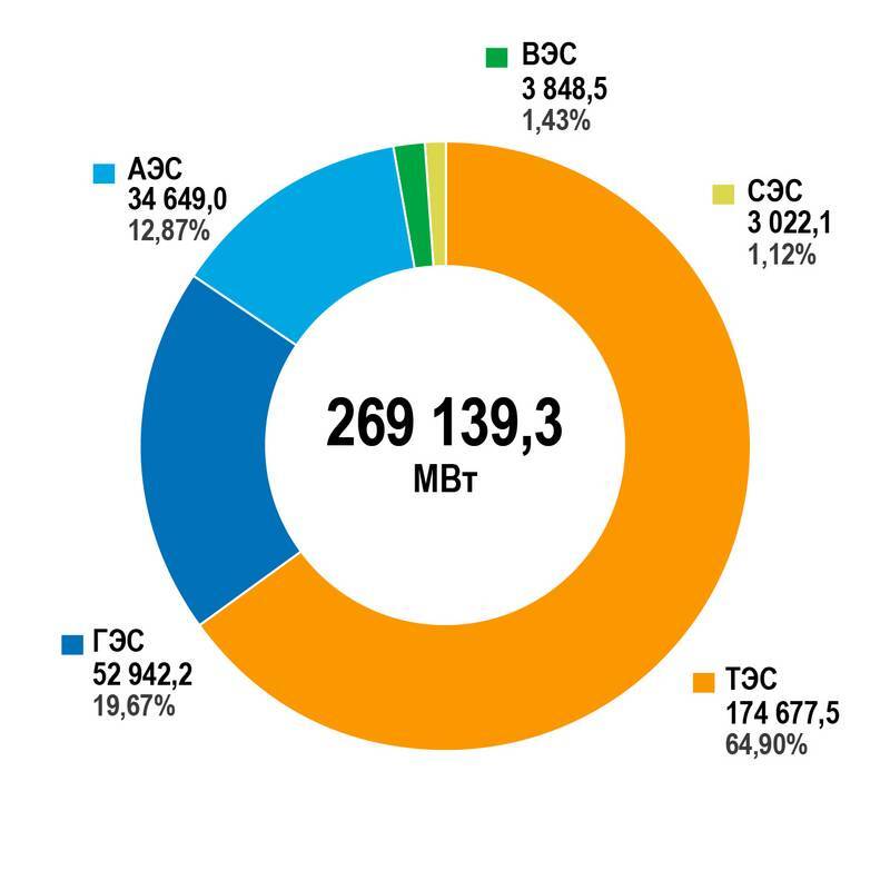 Ключевой структурной особенностью электроэнергетики России является разрыв между основной объединённой энергосистемой страны и изолированными энергорайонами. Несмотря на то, что Единая энергетическая система (ЕЭС) охватывает большую часть территории страны, существует пять технологически изолированных территориальных энергосистем (ТИТЭС), расположенных в стратегически важных регионах. Масштаб данного структурного дисбаланса становится очевиден при анализе мощностей: на долю всех изолированных систем приходится всего 2% от общей установленной мощности электростанций России. На 1 января 2025 года общая установленная мощность электростанций энергосистемы России составила 269,1 тыс. МВт, в том числе ЕЭС России – 263,7 тыс. МВт, ТИТЭС — 5,4 тыс. МВт (рисунок 1).