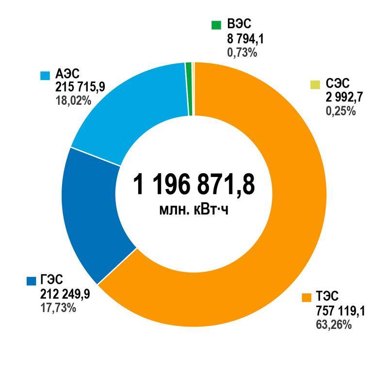 На рисунке 2 указана выработка электроэнергии электростанциями и потребление электроэнергии в энергосистеме России, что в 2024 году составило 1 190,2 млрд кВт∙ч, в том числе в ЕЭС России – 1 174,1млрд кВт∙ч, в ТИТЭС — 16,2 млрд кВт∙ч и возникает вопрос об энергообеспечении удаленных и изолированных территорий ввиду стратегических целей нашей страны по развитию Дальнего Востока и Арктики. Решение данной проблемы требует разработки подходов к энергообеспечению, среди которых перспективным направлением является внедрение автономных гибридных энергоустановок, способных снизить зависимость от традиционного топлива и повысить надёжность энергоснабжения удалённых территорий. В России разрабатываются различные виды и типы энергетических установок, способных обеспечить электроэнергией территории, - гибридные энергетические установки, работающие на базе различных типов ВИЭ (солнечно-ветровые системы, которые обеспечивают энергоснабжение в различных погодных условиях за счет взаимодополняющей работы солнечных панелей и ветрогенераторов; солнечно-тепловые установки, одновременно производящие электроэнергию с помощью фотоэлектрических панелей и тепловую энергию для нагрева воды через солнечные коллекторы; геотермально-солнечные комплексы, где геотермальные тепловые насосы, извлекающие тепло из земли, сочетаются с солнечными панелями для генерации электричества; гидро-солнечные решения, повышающие общую производительность за счет интеграции гидроэнергетики (малые ГЭС, приливные станции) и солнечной генерации; водородно-солнечные системы, использующие солнечную энергию для производства экологически чистого водорода, который впоследствии применяется для генерации электроэнергии).
