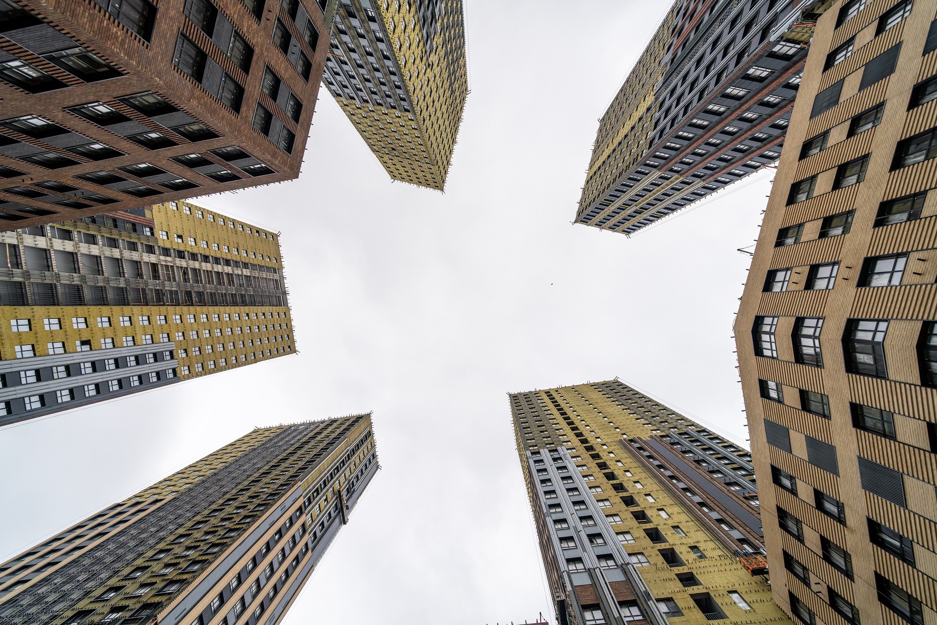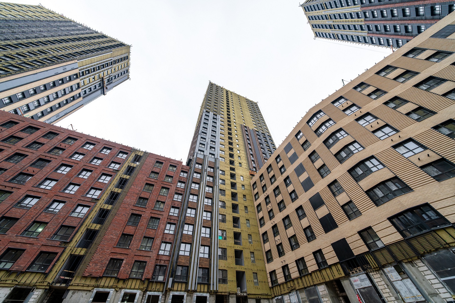 На фасадах ведётся масштабное устройство облицовки: смонтировано более 40 000 кв. м фасадной плитки, общий прогресс фасадных работ составляет 88%. Завершены кровельные работы на низкоэтажных секциях, на башнях готовность кровли превышает 80% и приближается к финальной стадии.