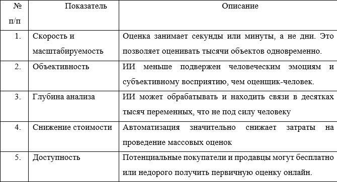 Преимущества использования ИИ для оценки недвижимости по сравнению с традиционными методами отображены в представленной ниже таблице.
