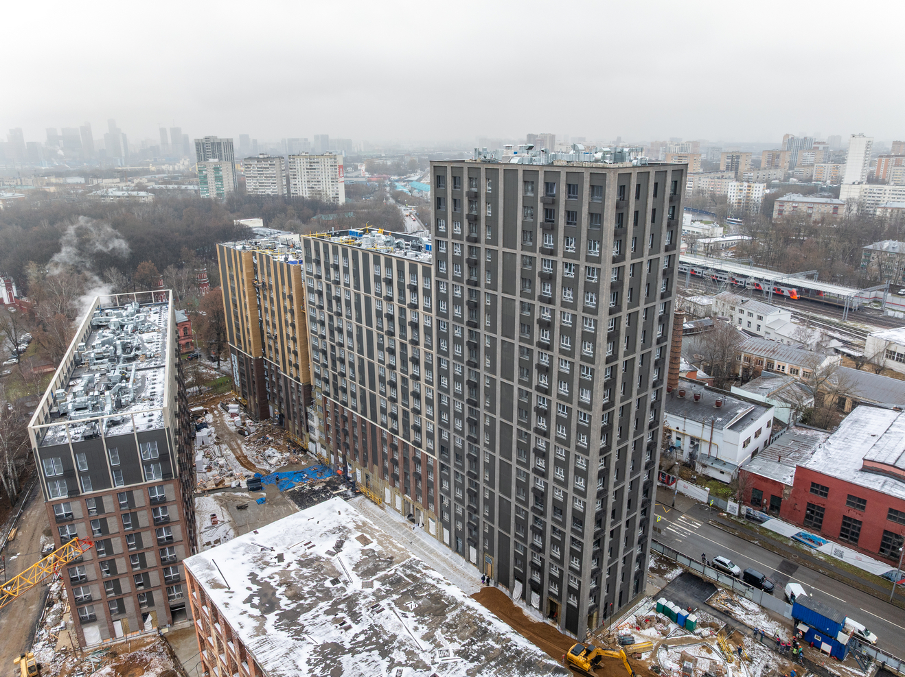 Компания «РГ-Девелопмент» продолжает реализацию жилого комплекса «Михалковский». Строительные работы ведутся одновременно по нескольким корпусам, а также в подземном паркинге и на территории благоустройства.