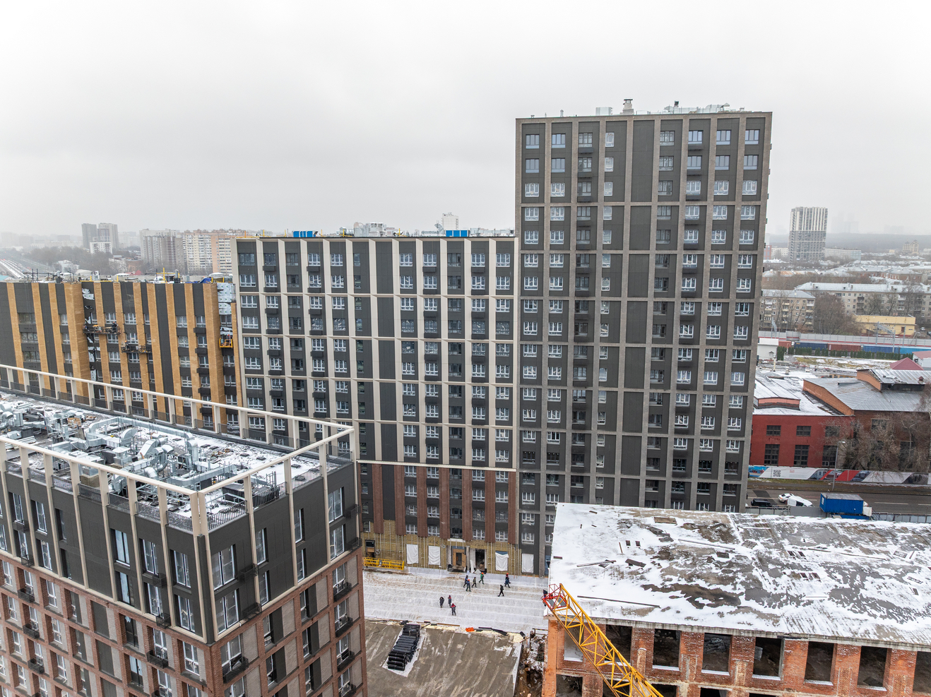 В четвертом корпусе завершаются работы по чистовой отделке стен и потолков в местах общего пользования. Установлены светильники и датчики дыма, проводятся индивидуальные испытания внутренних инженерных систем. В пятом корпусе активно продолжается чистовая отделка МОП, уровень готовности превышает 80%. В шестом корпусе завершены работы по устройству «мокрого» фасада на лоджиях, чистовая отделка мест общего пользования выполнена на 75%.