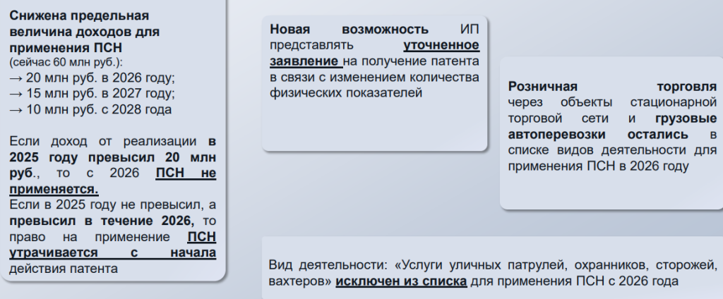 В 2026 году для налогоплательщиков, применяющих льготные режимы налогообложения (упрощённую, автоматизированную, патентную системы налогообложения) вступает в силу ряд существенных изменений, закреплённых Федеральным законом от 28.11.2025 № 425‑ФЗ и сопутствующими нормативными актами. В частности, индексированы лимиты для применения УСН. Коэффициент‑дефлятор на 2026 год составил — 1,090 (Приказ Минэкономразвития РФ от 06.11.2025 № 734). В результате: лимит доходов для применения УСН вырастает с 450 млн до 490,5 млн руб., лимит за 9 месяцев 2026 года для перехода на УСН с 01.01.2027 возрастает — с 337,5 млн до 367,875 млн руб., лимит стоимости основных средств возрастает— с 200 млн до 218 млн руб., численность работников остаётся прежней — не более 130 человек. При нарушении этих условий право на УСН утрачивается с первого числа месяца нарушения (п. 4 ст. 346.13 НК РФ). Что касается ставок и порогов освобождения по УСН, автоматическое освобождение от НДС в 2026 году получат плательщики, у которых доходы за 2025 год не превысили 20 млн руб., пониженные ставки НДС (без права на вычет входного НДС) составят: 5% — при годовом доходе от 20 млн до 272,5 млн руб. и 7% — при годовом доходе от 272,5 млн до 490,5 млн руб. Основная ставка НДС повышается с 20% до 22% (касается всех налогоплательщиков, включая УСН при отказе от пониженных ставок). Расчётная ставка для отдельных операций (например, при расчёте НДС с аванса) меняется с 20/120 на 22/122. Налоговая база и расходы с 01.01.2026 года изменилась в части перечня расходов, уменьшающих доходы, он становится открытым. Расходы учитываются по правилам гл. 25 НК РФ (как при налоге на прибыль), при соблюдении установленных требований. Для УСН «Доходы минус расходы» закрепляется порядок расчёта 1 % взноса с дохода свыше 300000 руб. (зафиксирован в НК РФ). Мораторий на штрафы за несвоевременное представление декларации по НДС продлевается на упрощенцев, ставших плательщиками НДС в 2026 году и отменяются ограничения на переход с пониженных ставок НДС на общие для УСН, вводятся ограничения полномочий регионов по установлению льготных ставок по УСН. Основные изменения для льготных режимов налогообложения представлены на рисунках 1, 1.2, 1.3, 1.4, 1.5, 1.6.