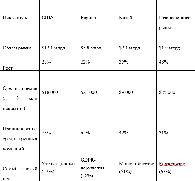США — мировой лидер по объёму рынка киберстрахования ($12 млрд в 2023 году), где сформировалась уникальная культура превентивной защиты.