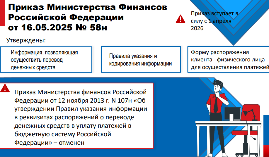 С 1 января 2026 года вступают в силу существенные изменения в работе с Единым налоговым счётом (ЕНС). Основные нововведения закреплены в: Федеральном законе от 31.07.2025 № 287‑ФЗ; приказе ФНС России от 20.08.2025 № ЕД‑7‑21/732@; приказе Минфина России от 16.05.2025 № 58н (действует с 1 апреля 2026 года). Изменения нормативной базы представлено на рисунках 1,2,3.