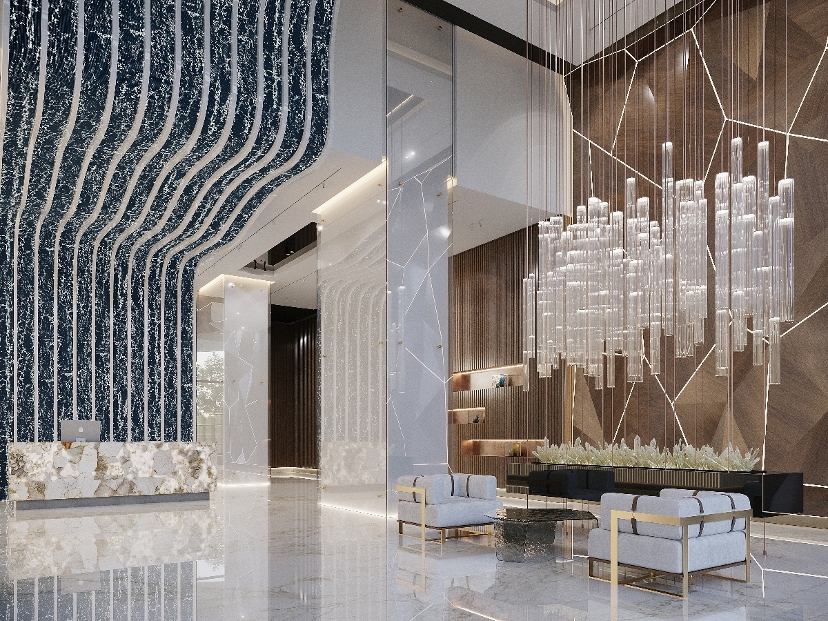 В каждой башне курортного жилого квартала премиум-класса Dream Riva от Regions Development предусмотрена просторная входная группа, разработанная российской студией дизайна Balcon. В высотке Aqua расположено гранд-лобби с акцентной инсталляцией, напоминающей настоящий водопад. Лобби башни Terra декорировано натуральным камнем и композицией (стеклянным флорариумом до потолка) с живым деревом. В светлом пространстве корпуса Aria появится дизайнерские люстры, напоминающие парящие в воздухе листья. В каждом лобби есть бары и клубные кафе, зона ресепшн и несколько сервисных помещений: секции для хранения колясок и велосипедов, комнаты с лапомойками. Таким образом, интерьеры общественных пространств проекта отвечают за концептуальное разграничение корпусов, во многом служат визитными карточками каждого дома и квартала в целом.