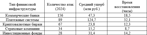 В таблице 1 представлены данные кибератак на объекты финансовой инфраструктуры и причиненный ими ущерб в 2024 году.