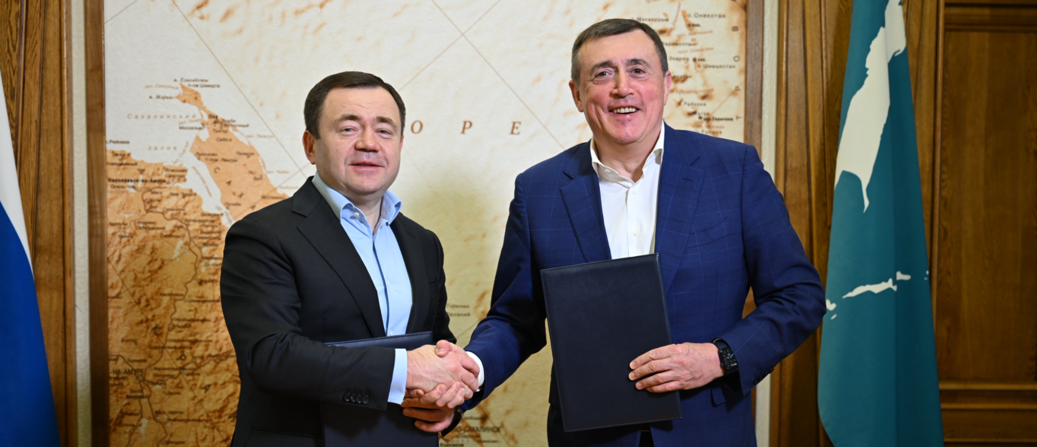 В рамках рабочего визита на Сахалин Петр Фрадков, председатель ПСБ, и Валерий Лимаренко, губернатор Сахалинской области, подписали ряд соглашений о сотрудничестве, в том числе в рамках реализации двух масштабных инфраструктурных проектов. Таким образом, стороны закрепили договоренности и намерения, достигнутые ранее по итогам недавней встречи в Москве.