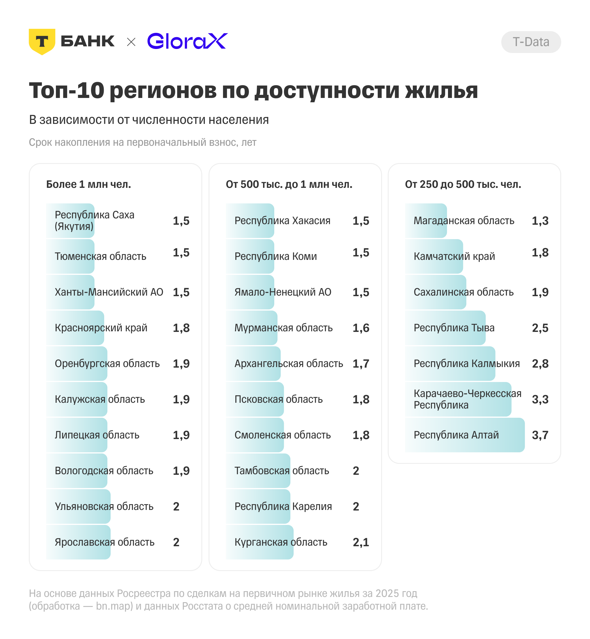 Т-Банк и девелопер GloraX в рамках аналитического проекта T-Data проанализировали доступность жилья и структуру первичного рынка новостроек в регионах России.