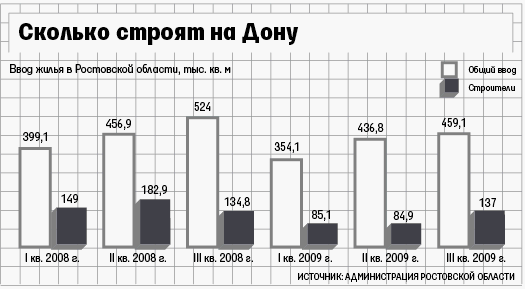 С января по сентябрь в Ростовской области введено 1,25 млн кв. м жилья – на 9,4% меньше аналогичного периода 2008 г., сообщил вчера замминистра территориального развития, архитектуры и градостроительства области Игорь Далаксакуашвили на совещании по итогам работы строительного комплекса. По его словам, план девяти месяцев выполнен на 101,2%.