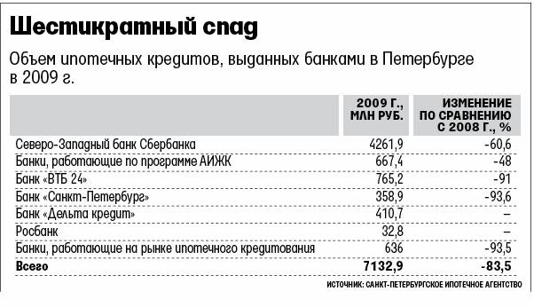 Объем ипотечного кредитования в Санкт-Петербурге в 2009 г. сократился в шесть раз. Некоторые банки вовсе перестали выдавать кредиты на покупку жилья