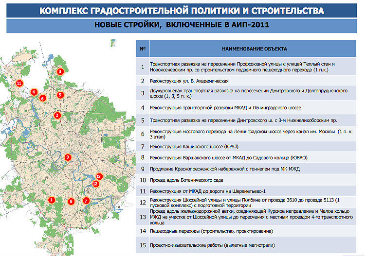 - Реконструкция транспортной развязки МКАД и Ленинградского шоссе
