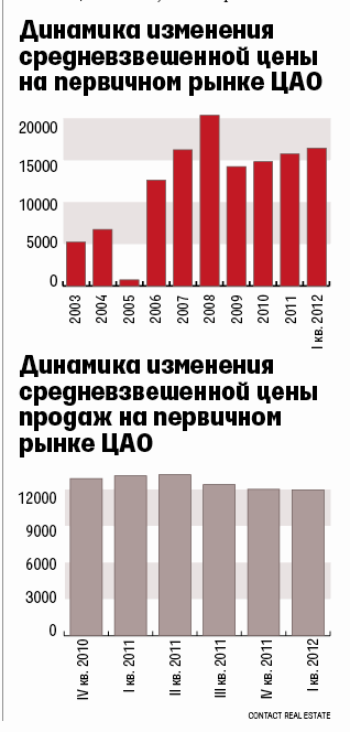 Хотя риэлторы снова наблюдают рост цен. За I квартал 2012 г., по информации CRE, квартиры, например, в «Итальянском квартале» подорожали до 20%, в «Садовых кварталах» – до 31%, в Sky House – до 33%. В жилых комплексах в Еропкинском и Сытинском переулках, которые получили право собственности, повышение цен составило от 2 до 21% и от 2 до 8% соответственно. Даже в Knightsbridge Private Park, который пока представляет собой котлован с водой (застройщик обещает положить бетонную плиту, чтобы предотвратить наводнения в квартирах), 1 кв. м за несколько месяцев продаж подорожал на 10%. «Обычные» квартиры на нижних этажах предлагаются сейчас по $18 500 за 1 кв. м, на верхних, с обещанными террасами и каминами, – по $28 000 за 1 кв. м.