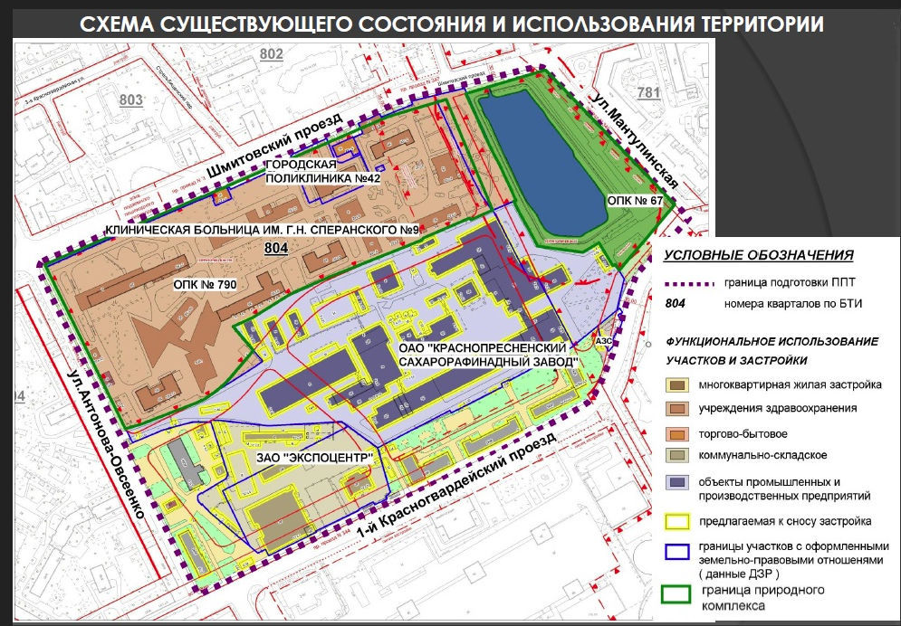 Схема существующего состояния и использования территории КСРЗ, источник Москомстройинвест
