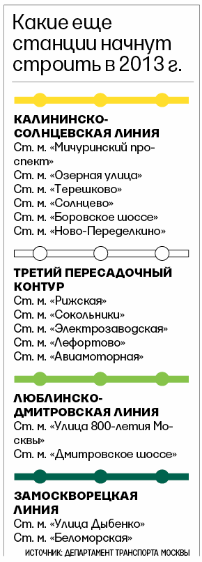 Московские власти пообещали, что к 2021 г. увеличат протяженность столичной подземки в 1,5 раза, построив дополнительно 150 км линий. В 2011 г. началось строительство восьми участков метро, в том числе и Третьего пересадочного контура. Общую стоимость всех строящихся сейчас объектов метрополитена чиновники ранее оценивали почти в 260 млрд руб.