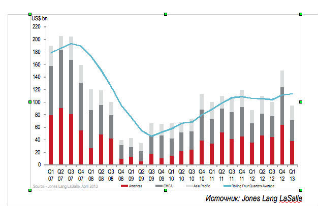 Инвесторы в январе-марте 2013 г. вложили в коммерческую недвижимость $94 млрд