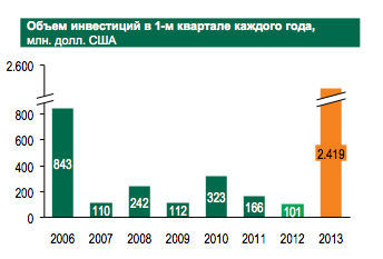 Рынок коммерческой недвижимости России привлек в первом квартале 2013 г. рекордный объем средств