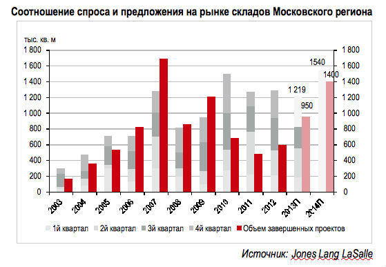 Спрос и предложение складов в Московском регионе в 2003-2014 г.