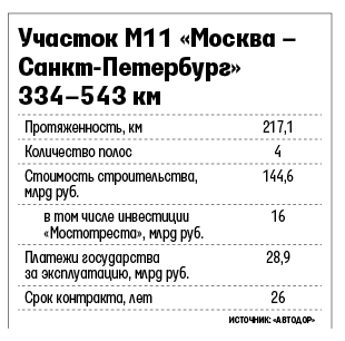 Одно из согласований для участка новой платной трассы М11 Москва - Санкт-Петербург в Новгородской области могло быть выдано с нарушением, следует из жалобы в Генпрокуратуру, которую направил антикоррупционный центр «Трансперенси интернешнл - Р» в Великом Новгороде (копия есть у «Ведомостей»). Участок в Тверской и Новгородской областях строит и будет обслуживать «Мостотрест». Это один из крупнейших контрактов «Автодора» (см. таблицу). Участок, как и вся трасса, должен быть достроен в 2018 г.