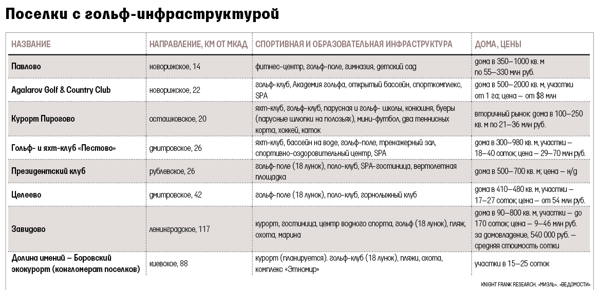 Значительные вложения в строительство гольф-поля и инфраструктуры окупаются 8-12 лет, отмечает Кустиков. Для девелоперов это слишком долго, они хотят более высокую доходность. Но коттеджи без инфраструктуры никто уже не покупает.