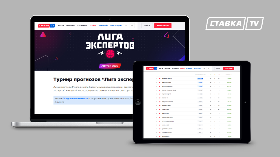 СТАВКА TV предлагает пользователям не просто угадать исход матча, но и убедительно аргументировать своё предположение: авторы хорошо обоснованных (и сбывающихся) прогнозов попадают в категорию «профи» и получают от сервиса гонорары. Все прогнозы участвуют в рейтинге, среди лидеров которого платформа разыгрывает призы. Участие бесплатно: пользователи делают прогнозы с помощью виртуального банка, то есть, по сути, они получают те же эмоции, что и с денежными ставками, но ничем не рискуют.