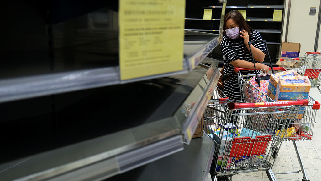 Эффект коронавируса: в Гонконге из-за эпидемии опустошают полки магазинов
