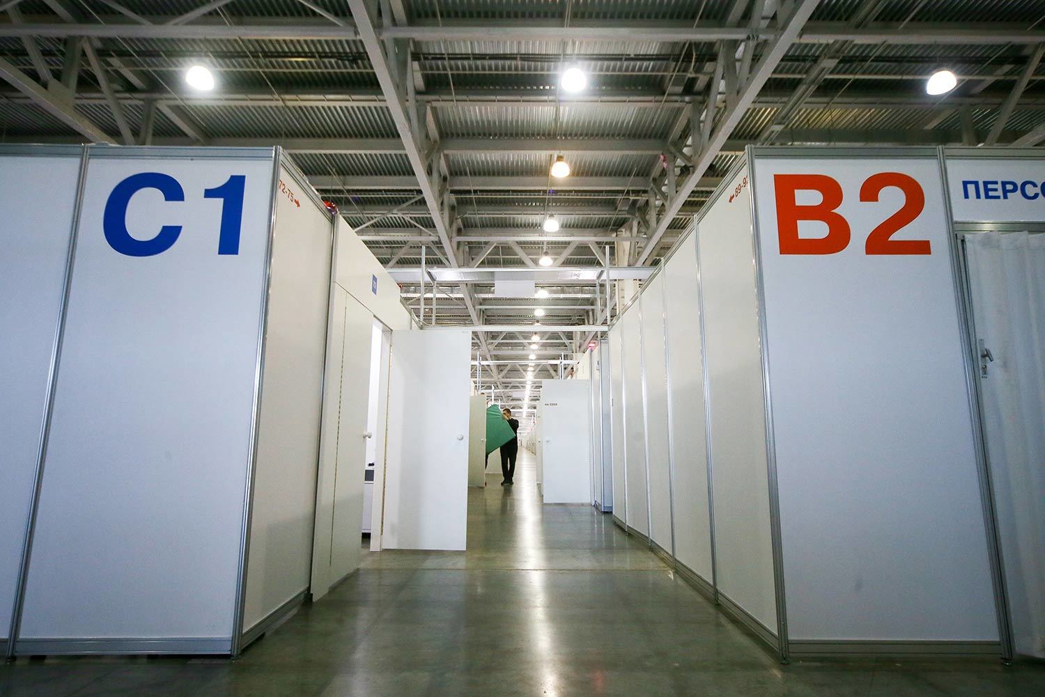 Временный госпиталь развернулся на площади 18 000 кв. м в одном из корпусов выставочного комплекса «Крокус экспо»