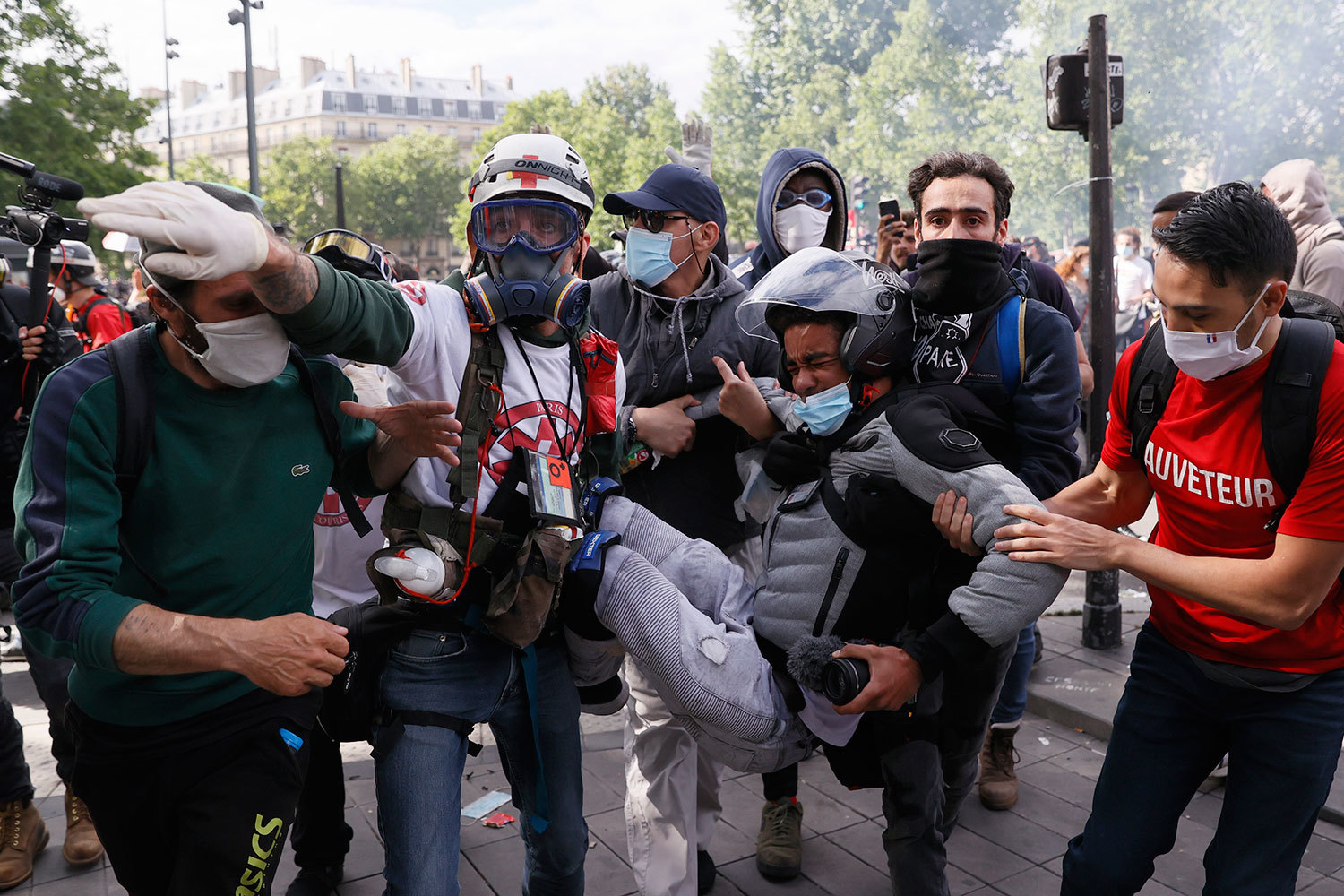 Организаторы планировали устроить шествие в сторону оперы Гарнье, но полицейские перекрыли колонне путь