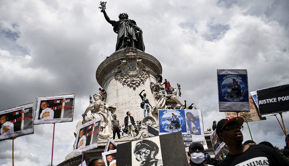В субботу днем, 13 июня, в Париже на площади Республики проходит масштабная акция протеста против полицейского произвола и расизма. По данным Le Figaro, на площади собралось не менее 20 000 манифестантов