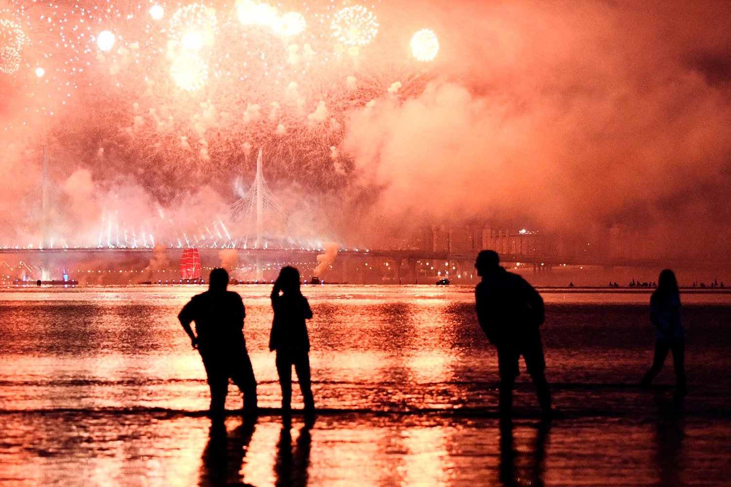 «Алые паруса» впервые транслировались по «Пятому каналу» в полном формате. Жители города все равно собрались посмотреть его лично