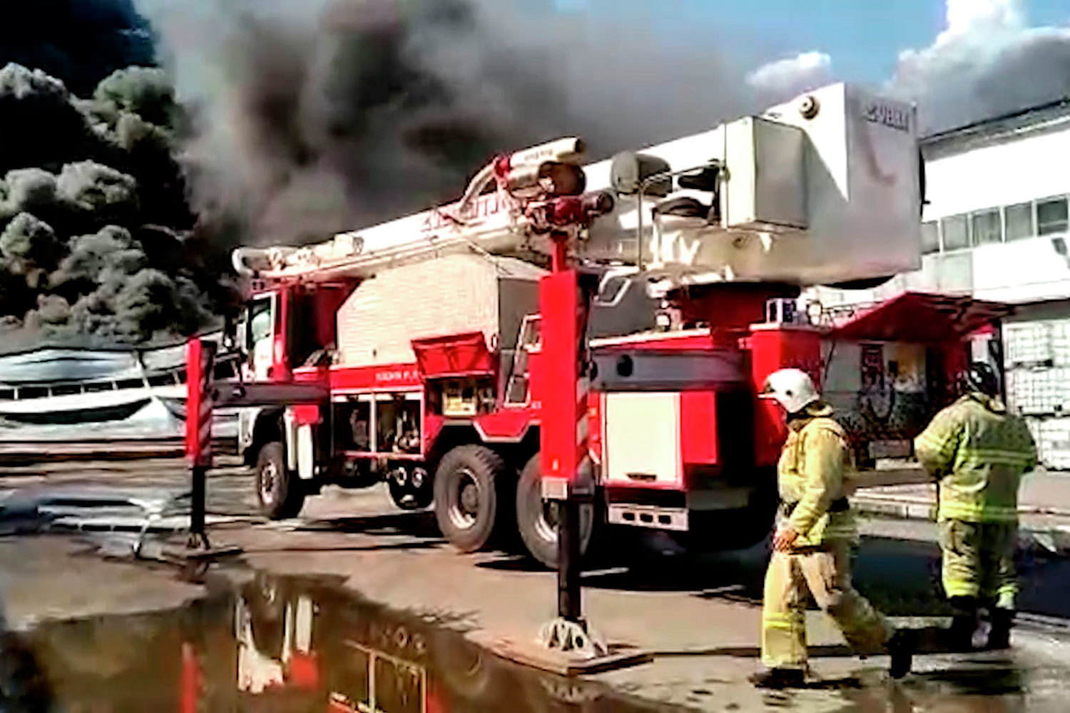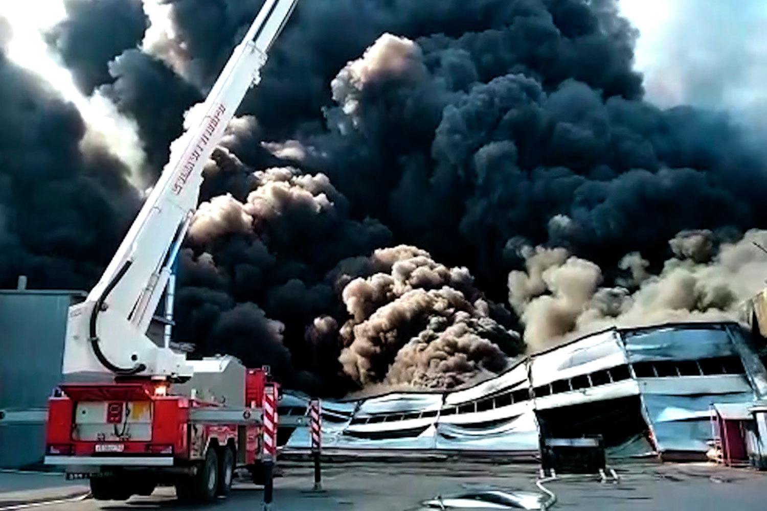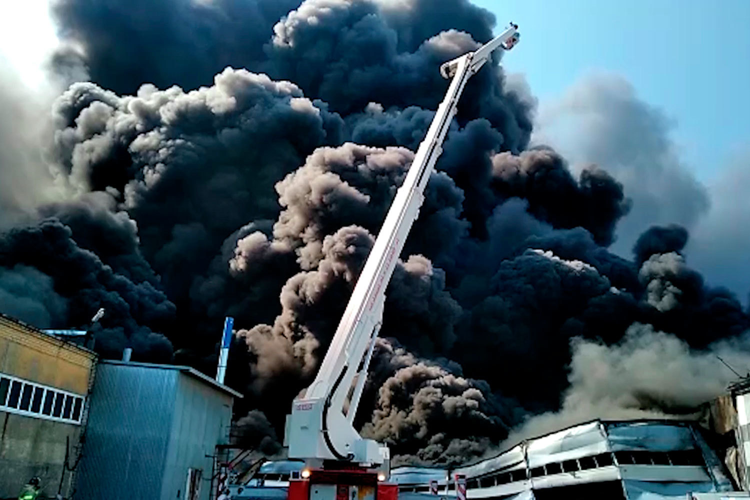 На складе хранились лакокрасочные материалы и пластиковые изделия – этим, по заявлению МЧС, объясняются черные клубы дыма