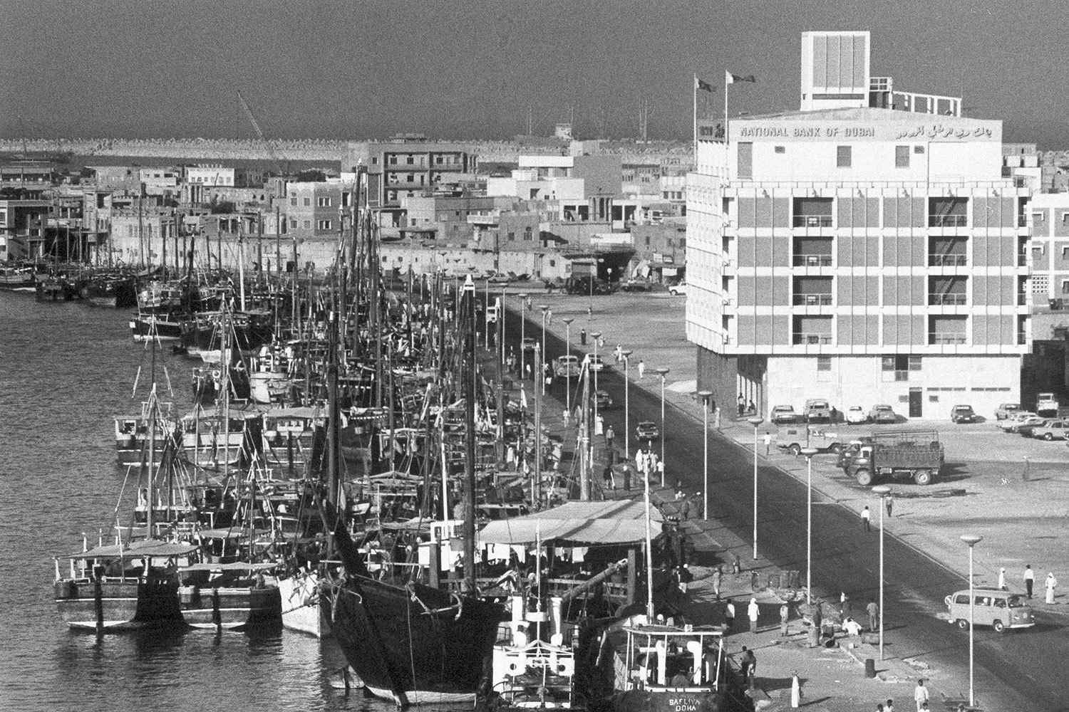 На фото: Дубай, 1961 г. Эта пыльная улица, усеянная пальмами, является на тот момент одной из главных в городе.
